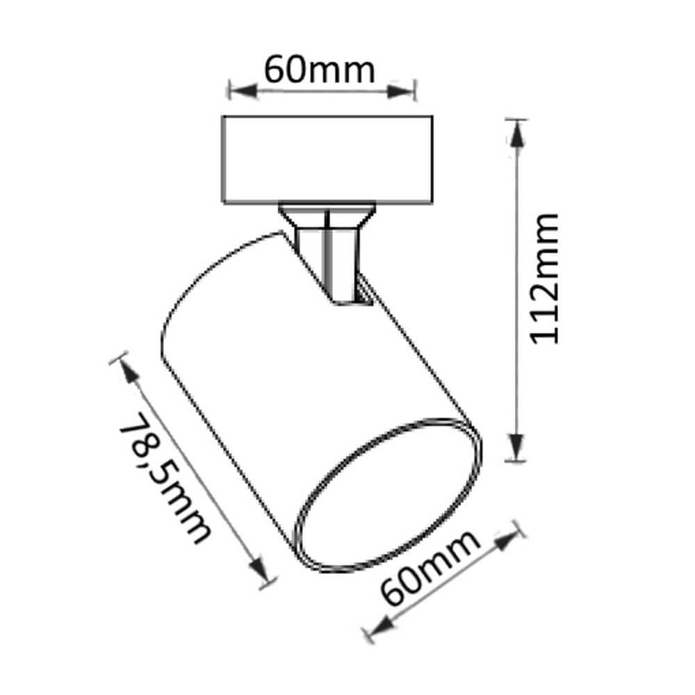 Для спота необходима 1 галогеновая лампа 50 W и цоколем GU10. Габариты изделия: высота – 112 мм, диаметр – 60 мм.