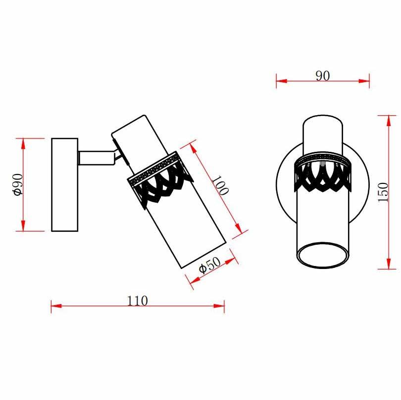 Для спота необходима 1 лампа накаливания 40 W и цоколем E14. Габариты изделия: высота – 150 мм, диаметр – мм.