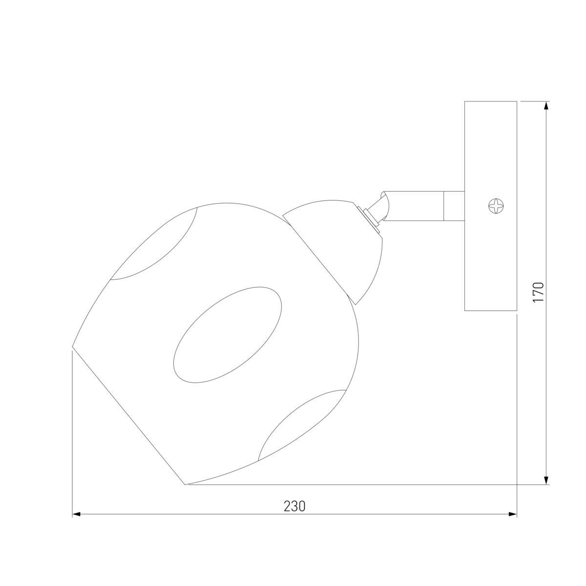 Для спота необходима 1 лампа накаливания 40 W и цоколем E27. Габариты изделия: высота – 170 мм, диаметр – мм.