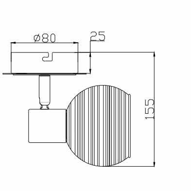 Для спота необходима 1 светодиодная лампа 40 W и цоколем E14. Габариты изделия: высота – 155 мм, диаметр – мм.