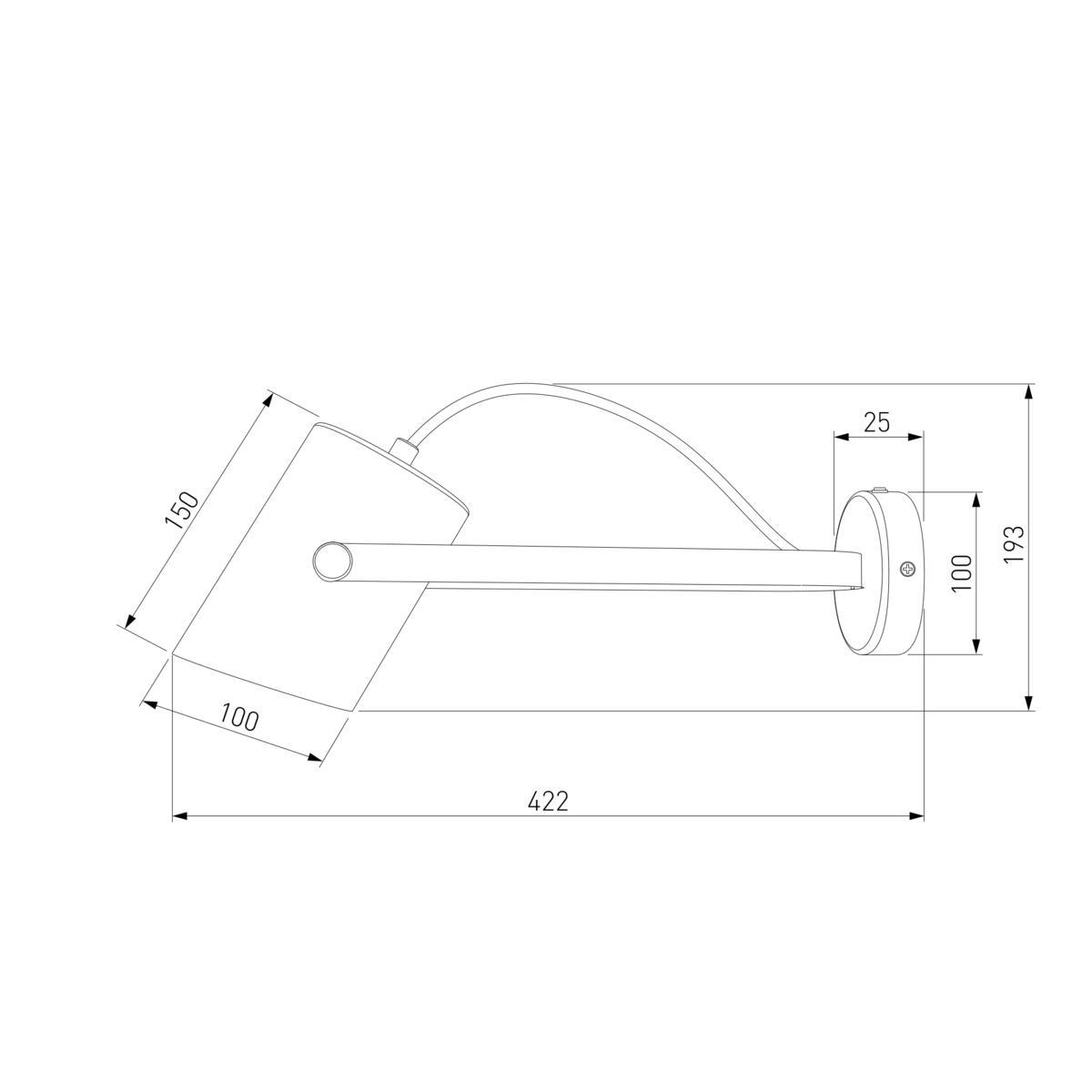 Для спота необходима 1 энергосберегающая лампа 25 W и цоколем E27. Габариты изделия: высота – 193 мм, диаметр – мм.