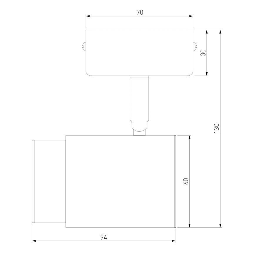 Для спота необходима 1 галогеновая лампа 35 W и цоколем GU10. Габариты изделия: высота – 94 мм, диаметр – мм.