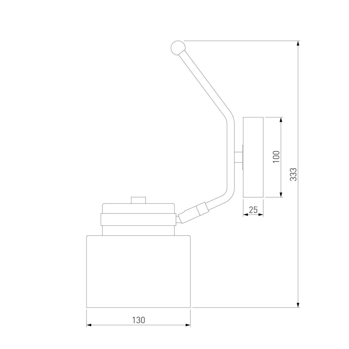 Для спота необходима 1 лампа накаливания 60 W и цоколем E27. Габариты изделия: высота – 333 мм, диаметр – мм.