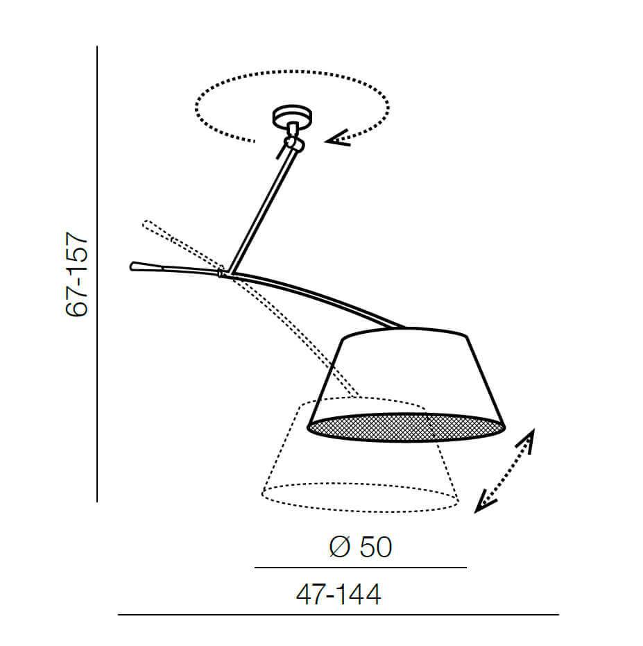 Для спота необходима 1 лампа накаливания 60 W и цоколем E27. Габариты изделия: высота – 1570 мм, диаметр – мм.