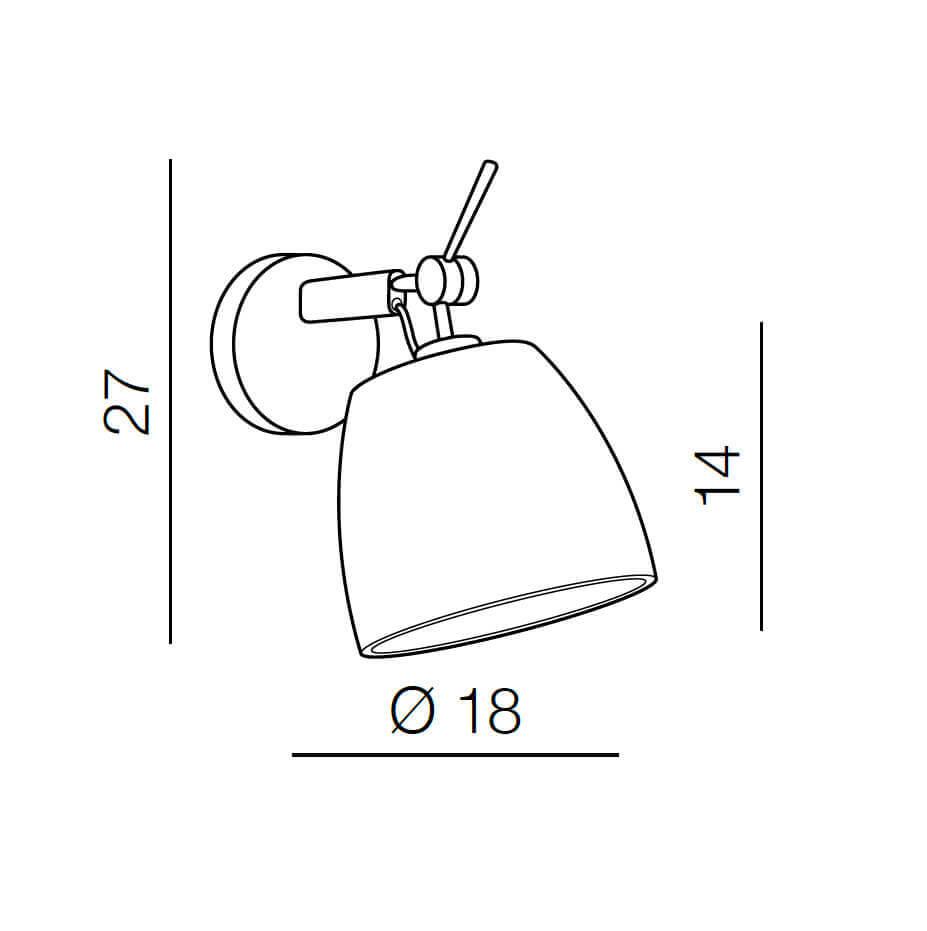 Для спота необходима 1 лампа накаливания 60 W и цоколем E27. Габариты изделия: высота – 270 мм, диаметр – 180 мм.