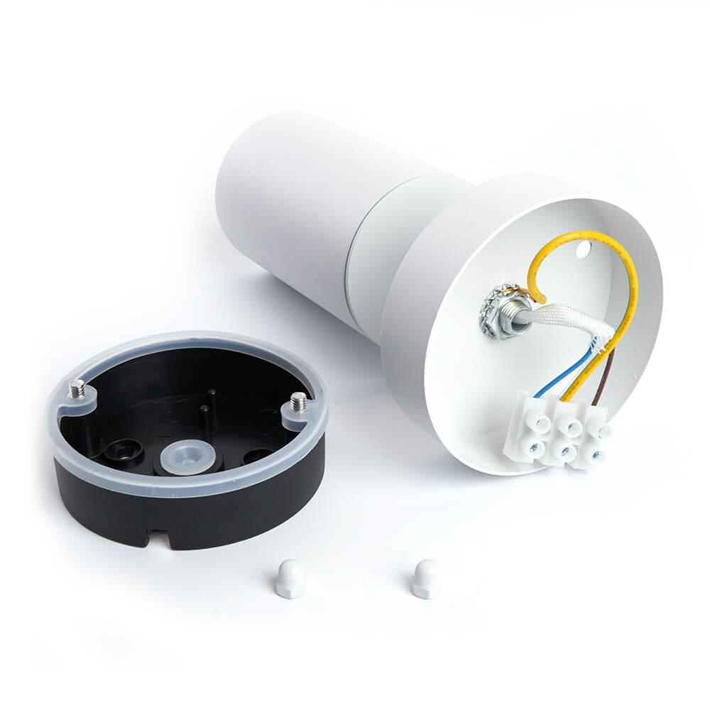Для спота необходима 1 галогеновая лампа 35 W и цоколем GU10. Габариты изделия: высота – 165 мм, диаметр – мм.