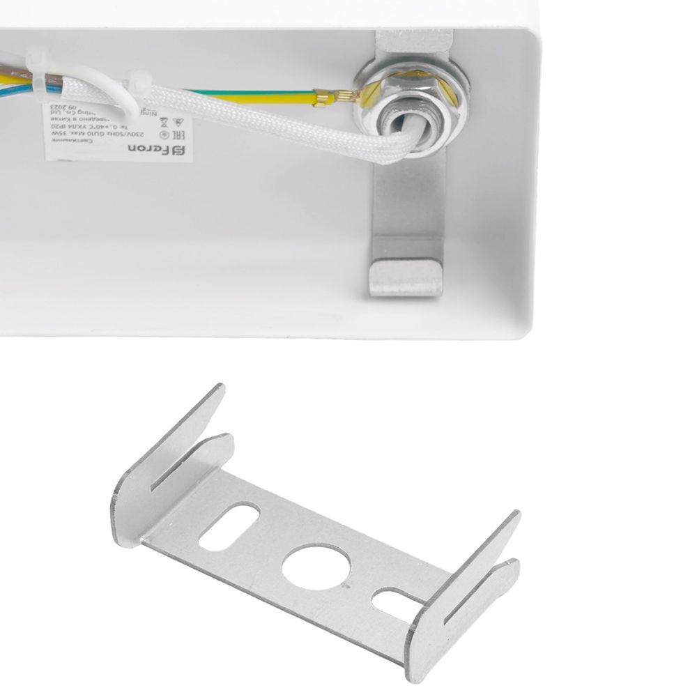 Для спота необходима 1 галогеновая лампа 35 W и цоколем GU10. Габариты изделия: высота – 140 мм, диаметр – мм.