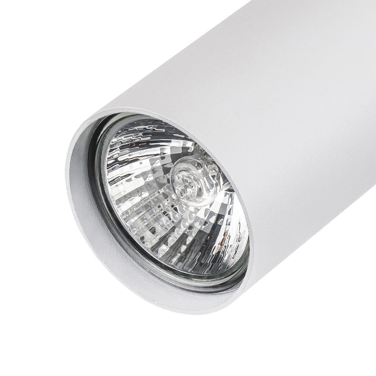 Для спота необходима 1 галогеновая лампа 50 W и цоколем GU10. Габариты изделия: высота – 165 мм, диаметр – 55 мм.