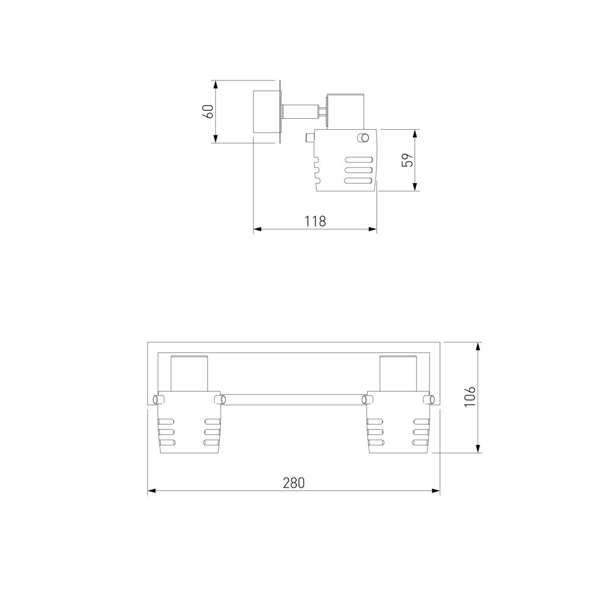 Для спота необходима 2 галогеновые лампы 50 W и цоколем G5.3. Габариты изделия: высота – 150 мм, диаметр – мм.