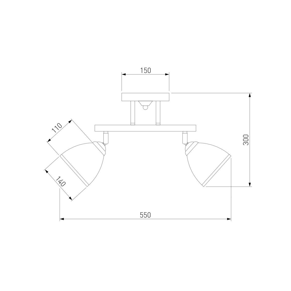 Для спота необходима 2 лампы накаливания 40 W и цоколем E27. Габариты изделия: высота – 300 мм, диаметр – мм.