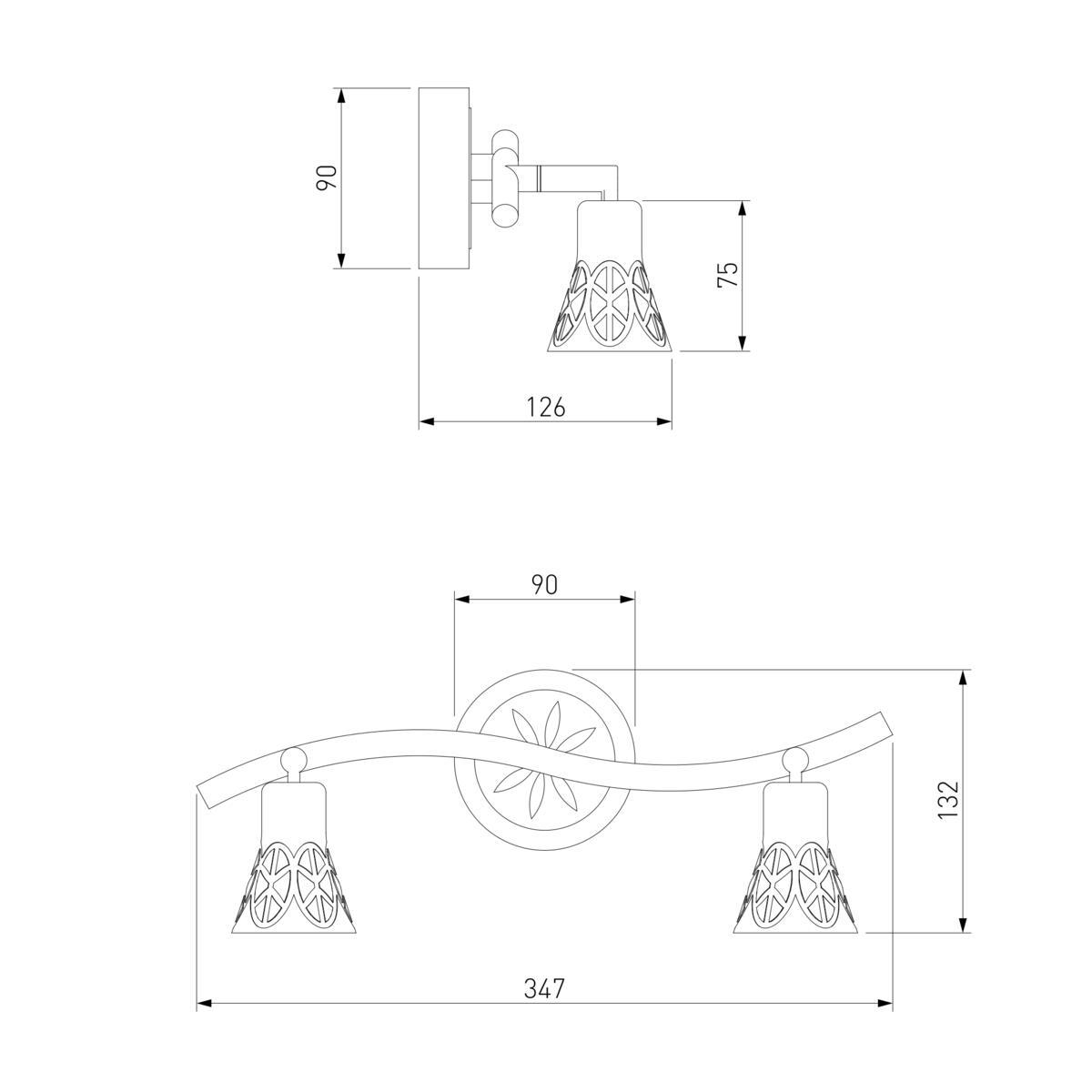 Для спота необходима 2 галогеновые лампы 50 W и цоколем G5.3. Габариты изделия: высота – 140 мм, диаметр – мм.