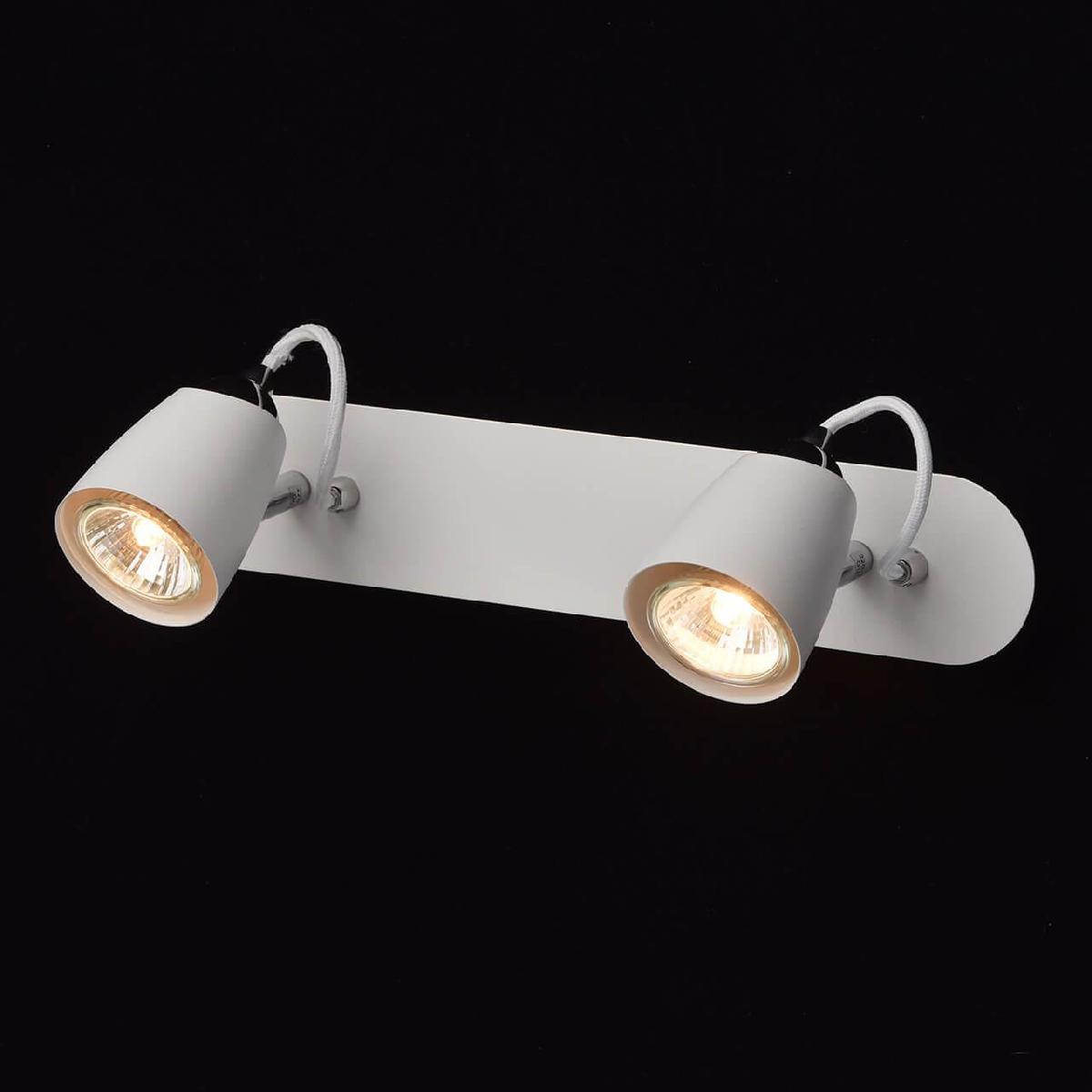 Для спота необходима 2 галогеновые лампы 50 W и цоколем GU10. Габариты изделия: высота – 95 мм, диаметр – мм.