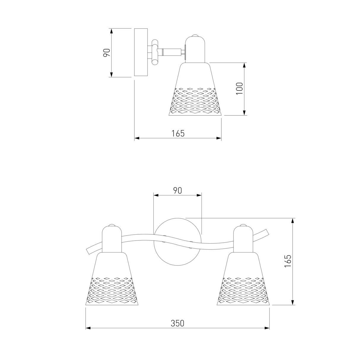 Для спота необходима 2 лампы накаливания 40 W и цоколем E14. Габариты изделия: высота – 170 мм, диаметр – мм.