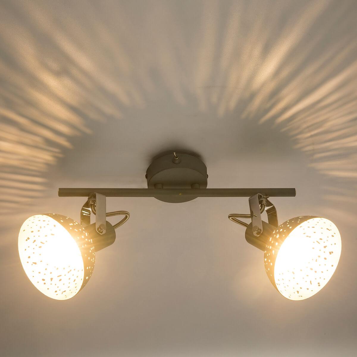 Для спота необходима 2 энергосберегающие лампы 25 W и цоколем E14. Габариты изделия: высота – 170 мм, диаметр – мм.