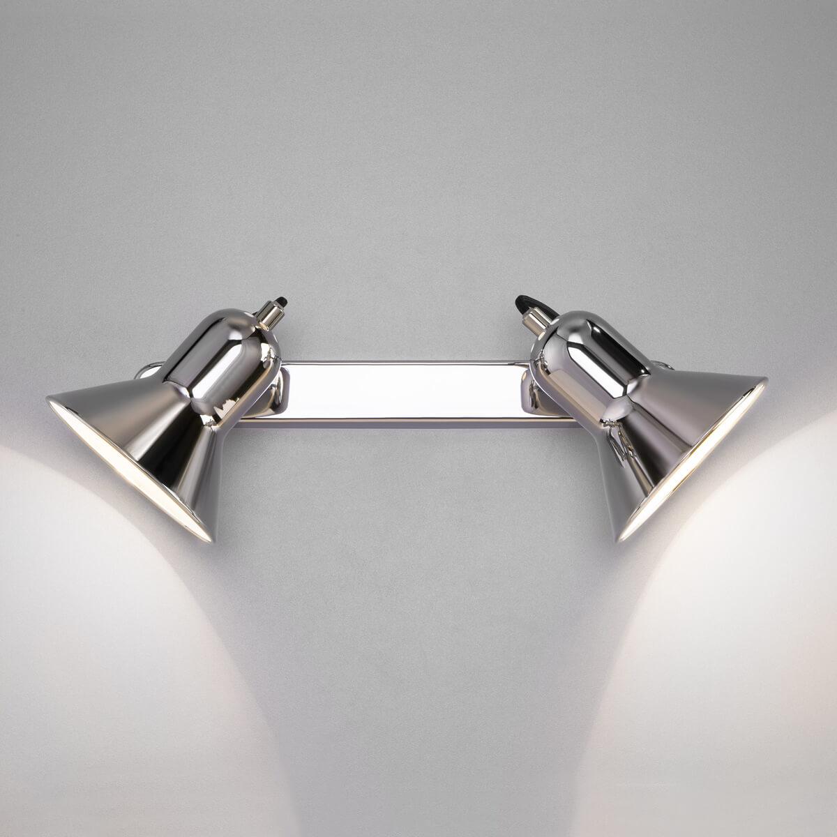 Спот Eurosvet Canotier 20082/2 хром от Китайского бренда Eurosvet из коллекции Canotier предназначен для установки в кухне на стену в хай-тек стиле. Спот с металлической арматурой цвет хрома и цвет хрома плафонами из металла, формы конуса предназначен для освещения м2.