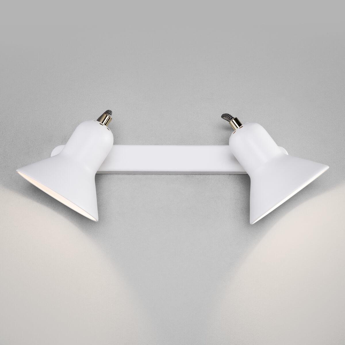 Спот Eurosvet Canotier 20083/2 белый/золото от Российского бренда Eurosvet из коллекции Canotier предназначен для установки в кухне на стену в хай-тек стиле. Спот с металлической арматурой белого цвета и белого цвета плафонами из металла, формы конуса предназначен для освещения 3 м2.