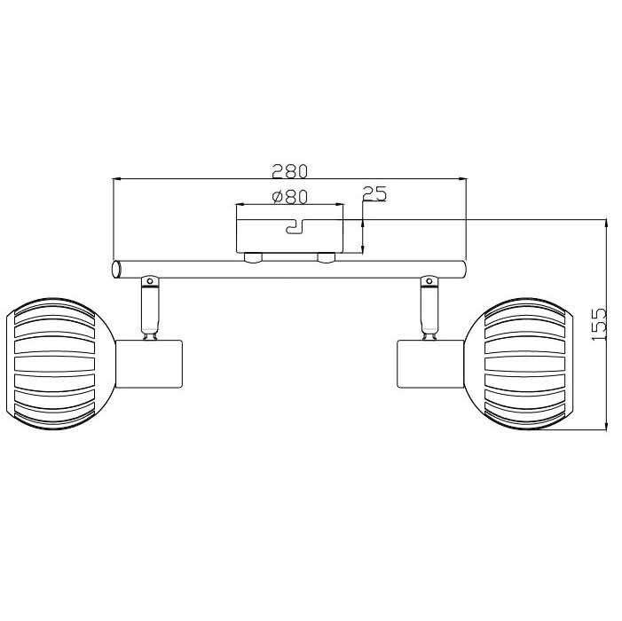 Для спота необходима 2 светодиодные лампы 40 W и цоколем E14. Габариты изделия: высота – 155 мм, диаметр – мм.