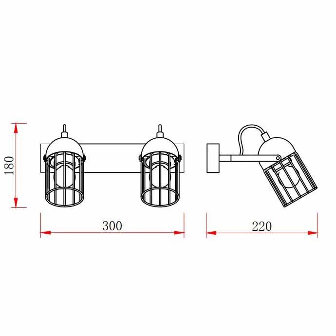 Для спота необходима 2 лампы накаливания 40 W и цоколем E27. Габариты изделия: высота – 180 мм, диаметр – мм.