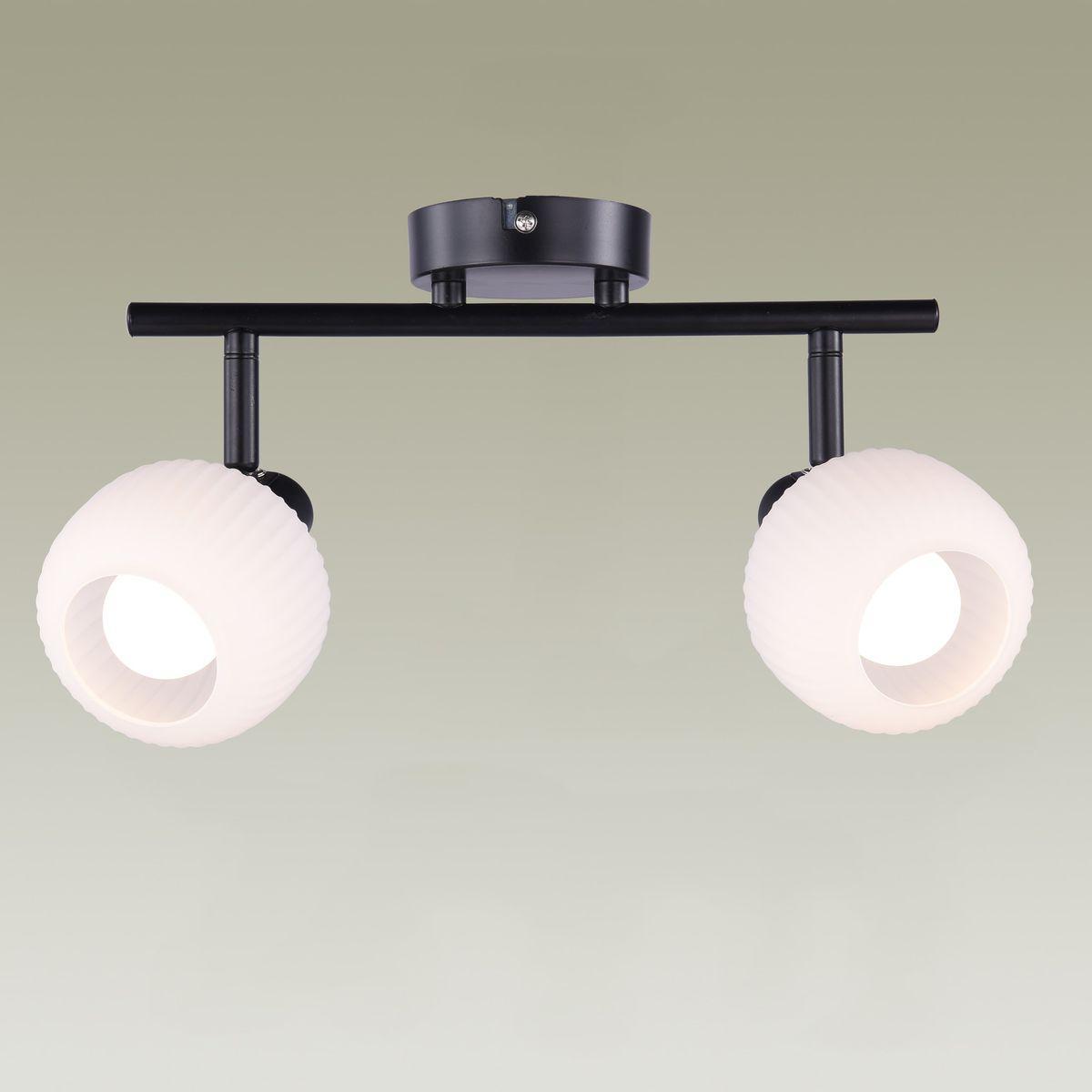 Спот Moderli Katrin V3031-2C от Китайского бренда из коллекции Katrin предназначен для установки в прихожей на потолок в современном стиле. Спот с металлической арматурой черного цвета и белого цвета плафонами из стекла, формы предназначен для освещения 4 м2.