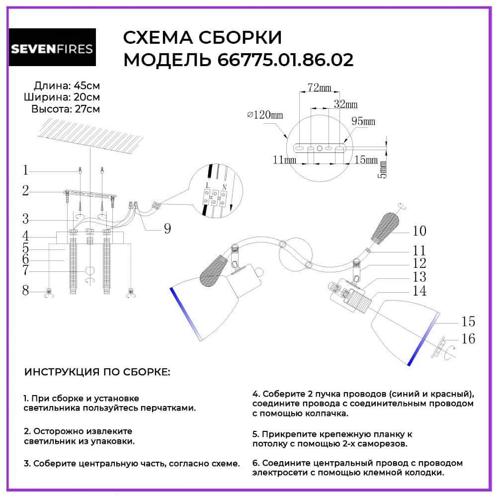 Для спота необходима 2 лампы накаливания 60 W и цоколем E27. Габариты изделия: высота – 270 мм, диаметр – мм.