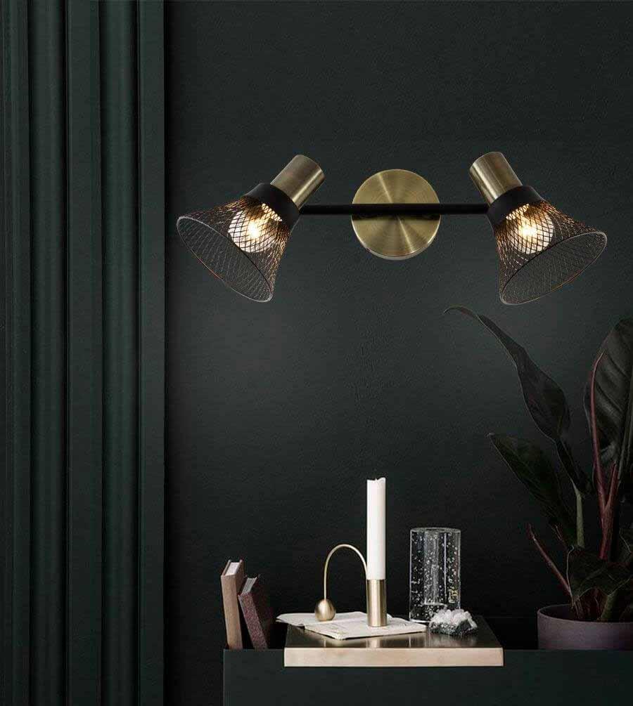 Для спота необходима 2 лампы накаливания 60 W и цоколем E14. Габариты изделия: высота – 190 мм, диаметр – мм.