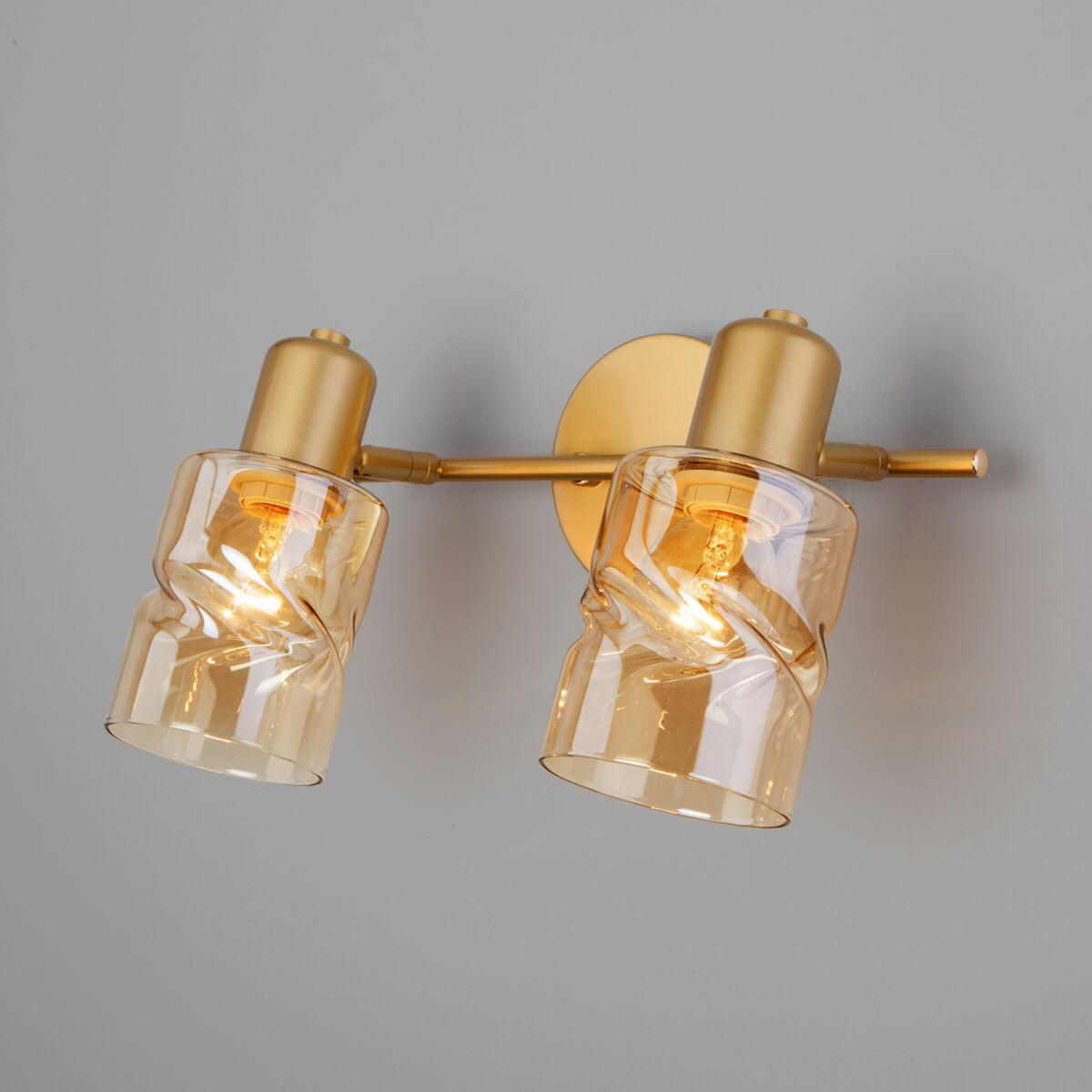 Спот Eurosvet Ansa 20120/2 перламутровое золото от Китайского бренда из коллекции Ansa предназначен для установки в гостиной на стену в современном стиле. Спот с металлической арматурой залотого цвета и янтарного цвета плафонами из стекла, формы предназначен для освещения 4 м2.