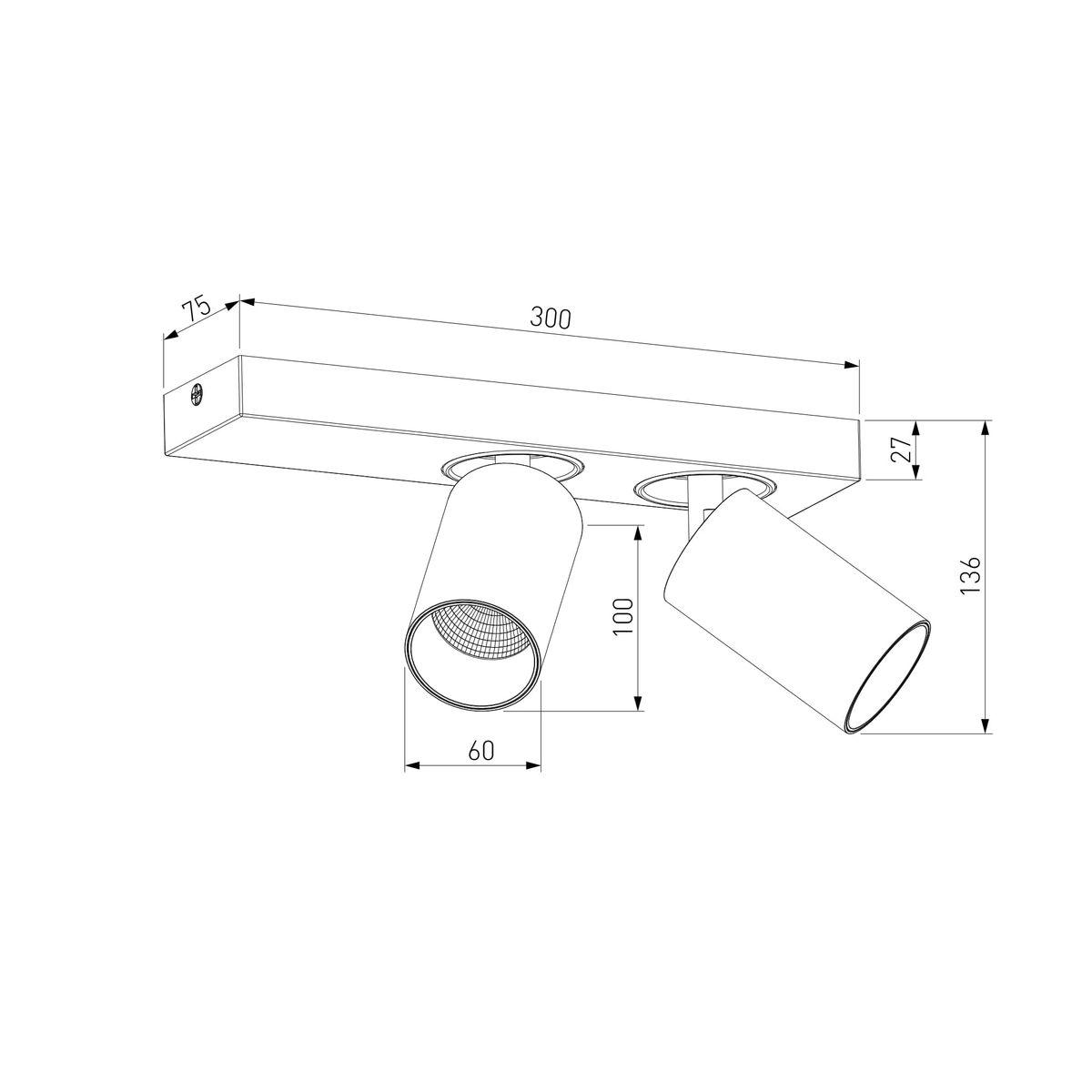 Для спота необходима светодиодных ламп 10 W и цоколем LED. Габариты изделия: высота – 136 мм, диаметр – мм.