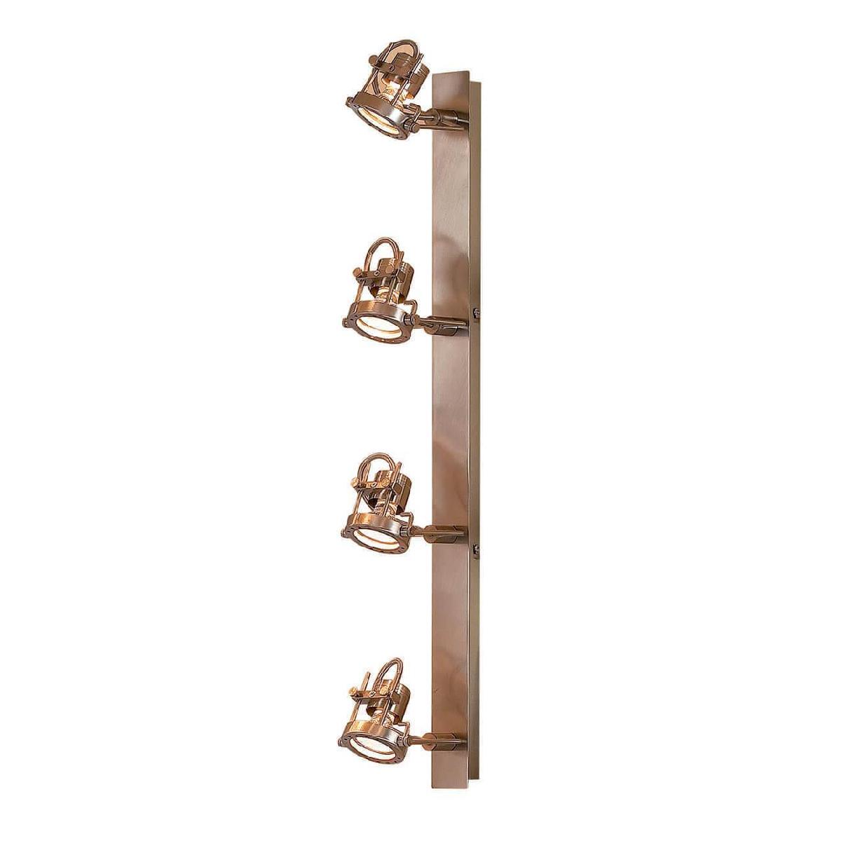 Для спота необходима 4 галогеновые лампы 50 W и цоколем GU10. Габариты изделия: высота – мм, диаметр – мм.