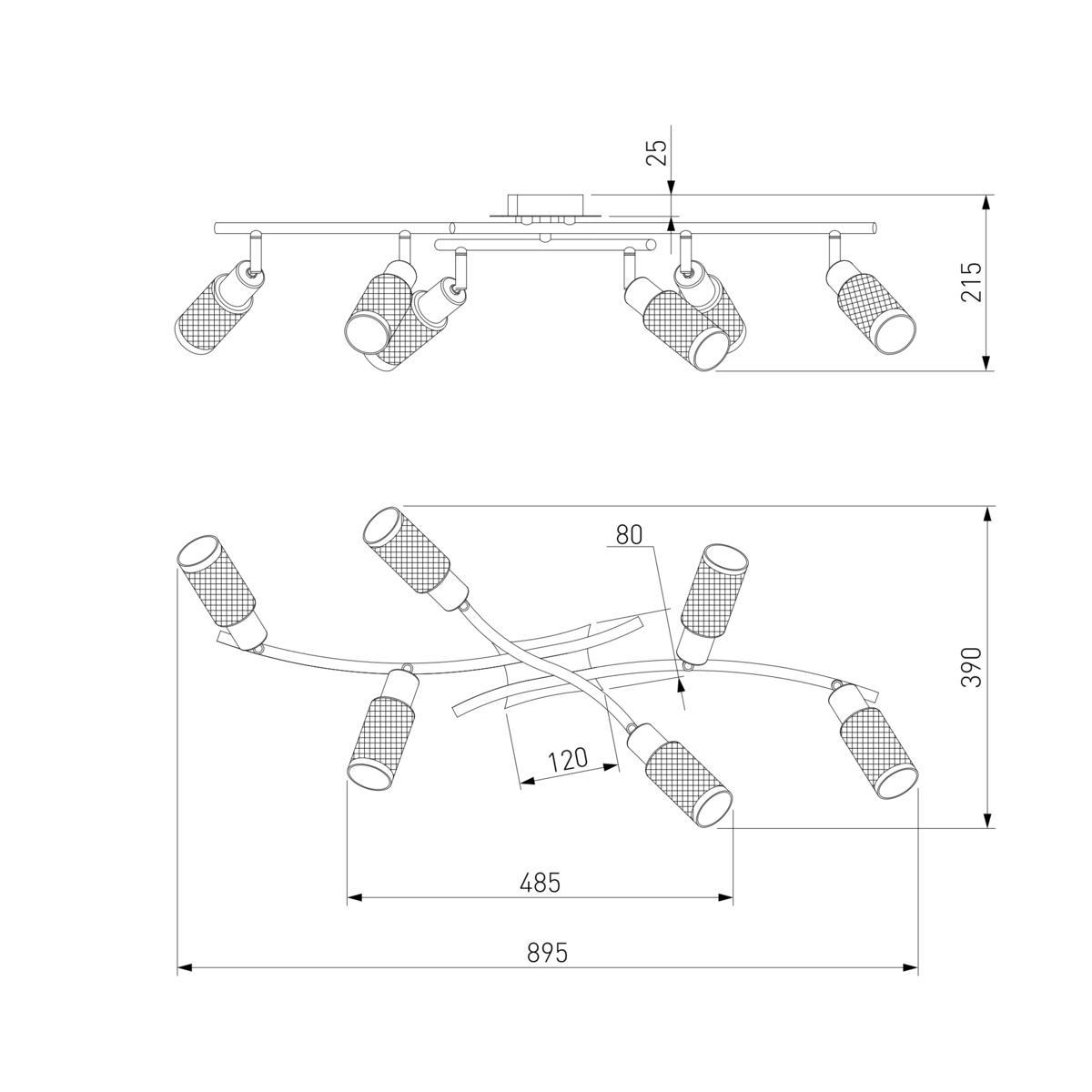 Для спота необходима 6 ламп накаливания 40 W и цоколем E14. Габариты изделия: высота – 210 мм, диаметр – мм.