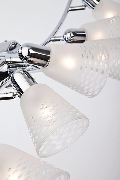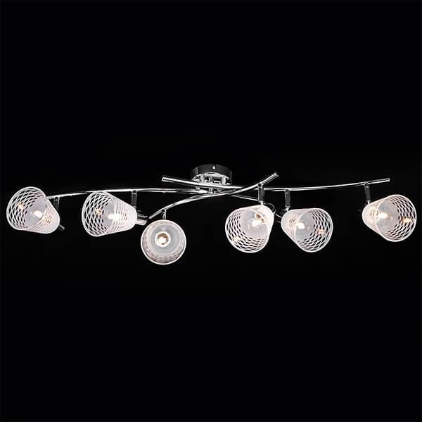 Потолочный светильник Eurosvet 20053/6 хром от Китайского бренда Eurosvet из коллекции Органик предназначен для установки в спальни на потолок в современном стиле. Спот с металлической арматурой цвет хрома и белого цвета плафонами из стекла, формы конуса предназначен для освещения м2.