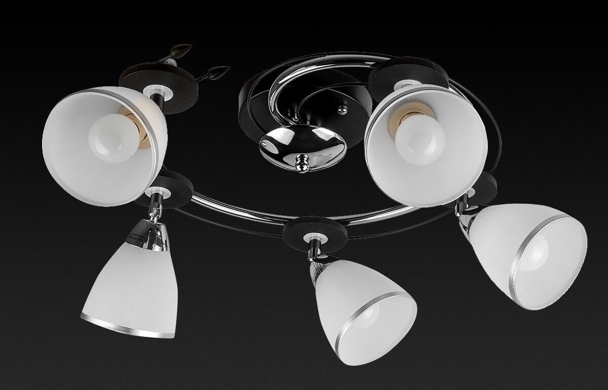 Для спота необходима 5 ламп накаливания 40 W и цоколем E14. Габариты изделия: высота – 230 мм, диаметр – 480 мм.