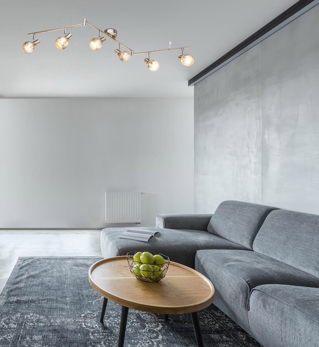 Спот Globo Zacate 54840-6 от Австрийского бренда Globo из коллекции Zacate предназначен для установки в гостиной на потолок в современном стиле. Спот с металлической арматурой цвета матовый никель и серого цвета плафонами из стекла, формы круга предназначен для освещения 8,3 м2.