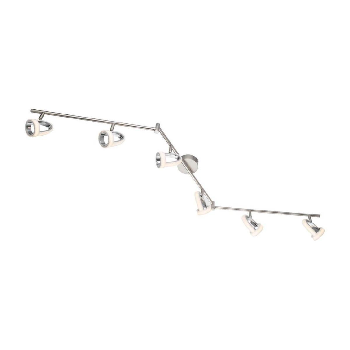 Спот Globo Rodrik 56006-6 от Австрийского бренда Globo из коллекции Rodrik предназначен для установки в спальни на потолок в хай-тек стиле. Спот с металлической арматурой цвета матовый никель и белого цвета плафонами из акрила, формы овала предназначен для освещения м2.