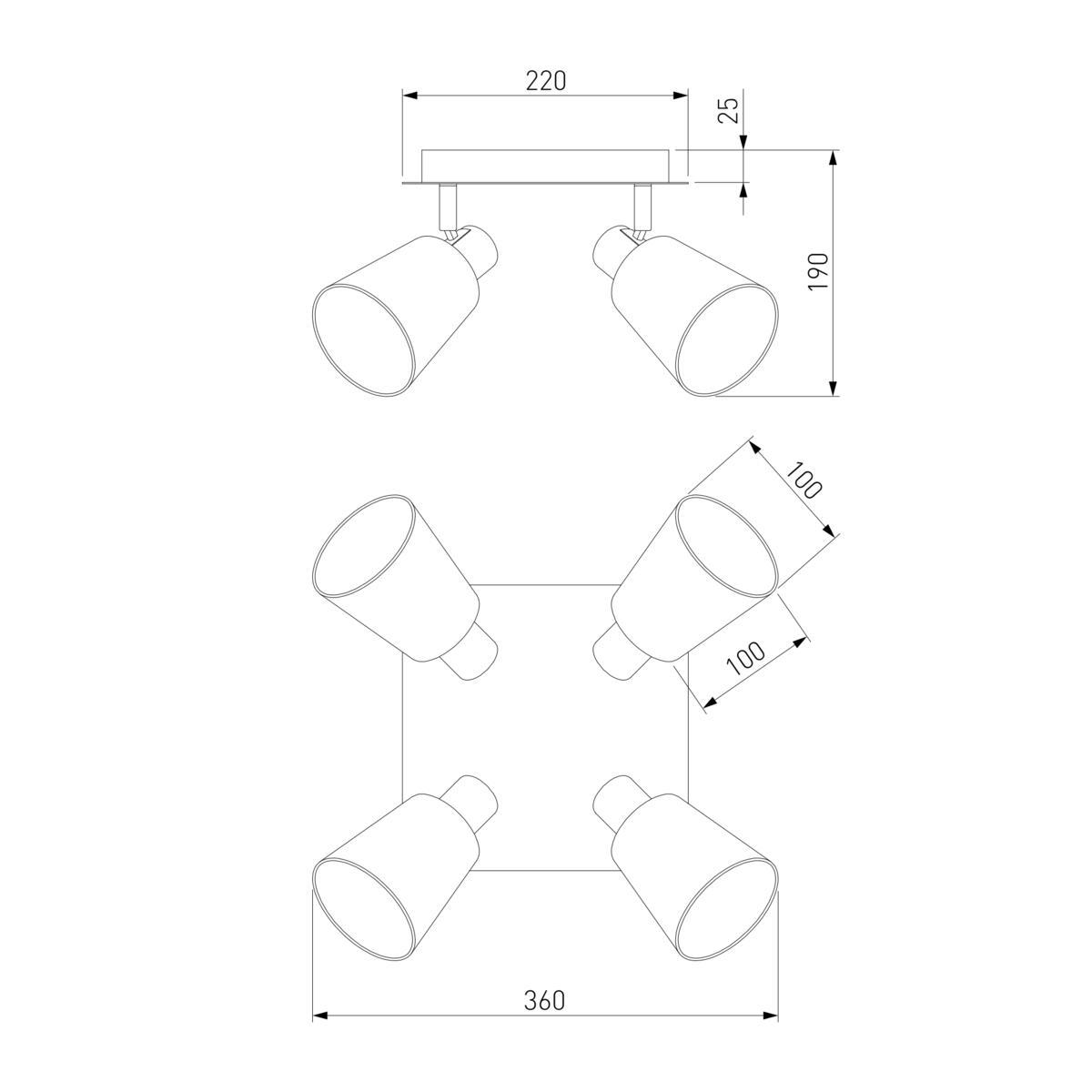 Для спота необходима 4 лампы накаливания 40 W и цоколем E14. Габариты изделия: высота – 190 мм, диаметр – мм.