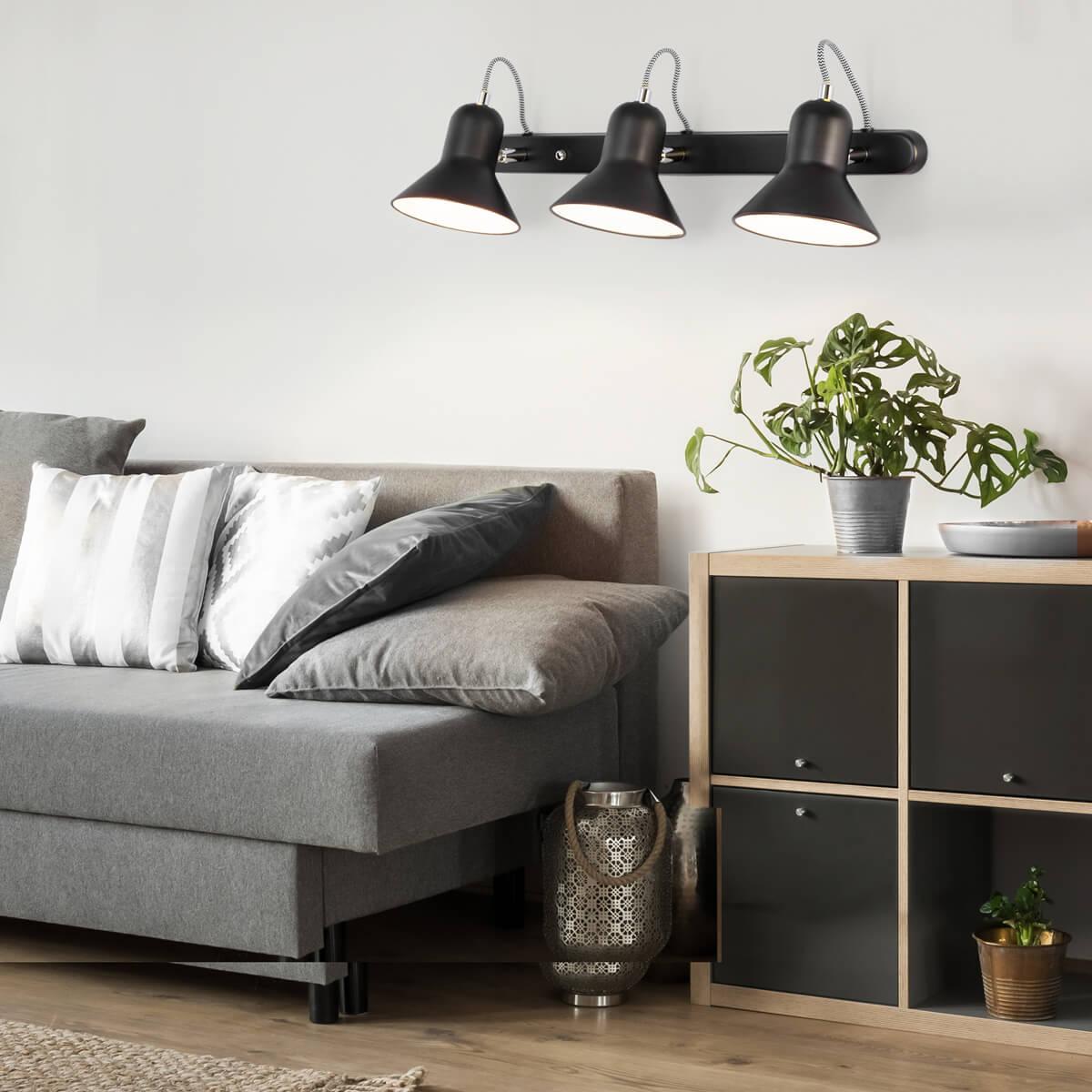 Настенный светильник Eurosvet 20083/3 черный/хром от Российского бренда Eurosvet из коллекции Canotier предназначен для установки в кухне на стену в хай-тек стиле. Спот с металлической арматурой черного цвета и черного цвета плафонами из металла, формы конуса предназначен для освещения 5 м2.