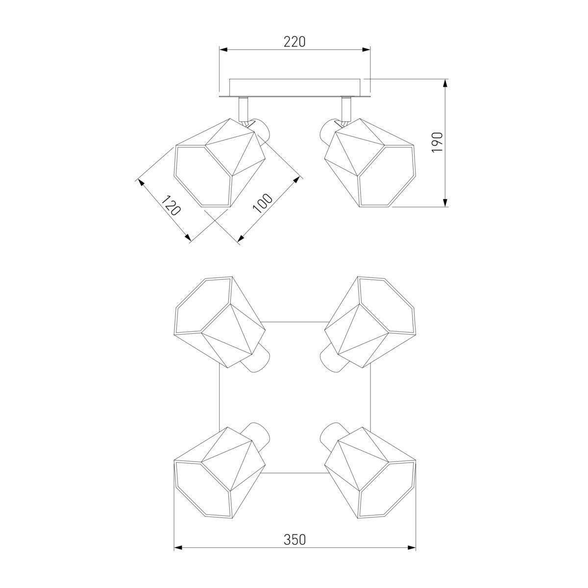 Для спота необходима 4 светодиодные лампы 28 W и цоколем E14. Габариты изделия: высота – 190 мм, диаметр – мм.