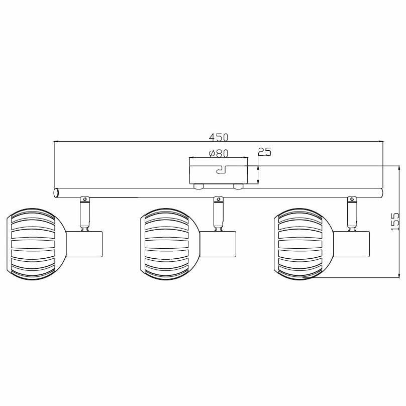 Для спота необходима 3 светодиодные лампы 40 W и цоколем E14. Габариты изделия: высота – 155 мм, диаметр – мм.