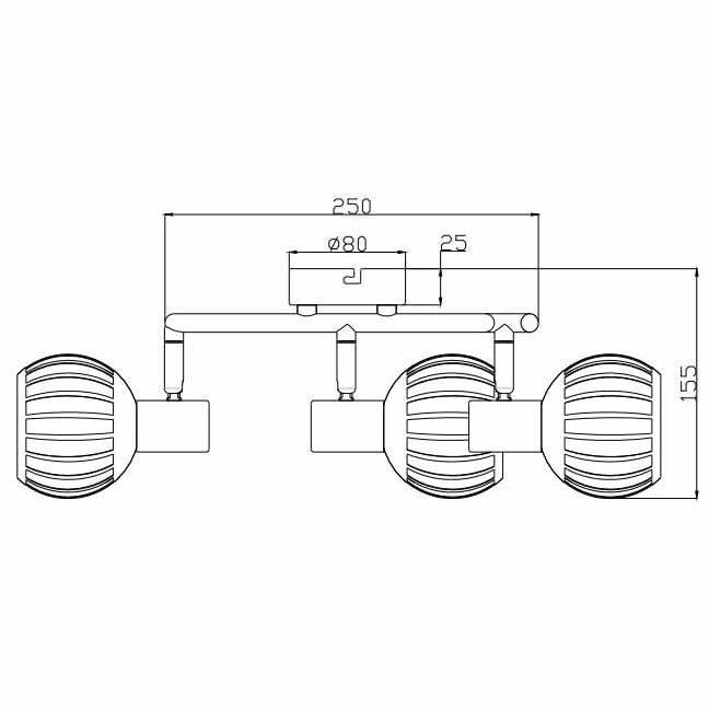 Для спота необходима 3 светодиодные лампы 40 W и цоколем E14. Габариты изделия: высота – 155 мм, диаметр – мм.