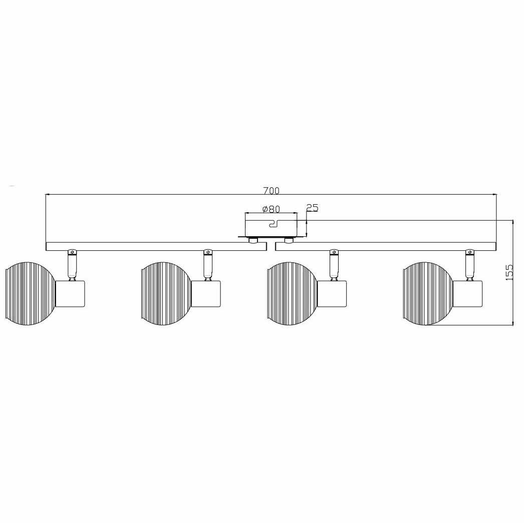 Для спота необходима 4 светодиодные лампы 40 W и цоколем E14. Габариты изделия: высота – 155 мм, диаметр – мм.
