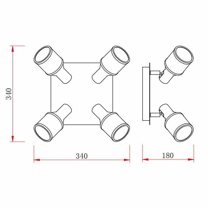 Для спота необходима 4 лампы накаливания 40 W и цоколем E14. Габариты изделия: высота – 180 мм, диаметр – мм.