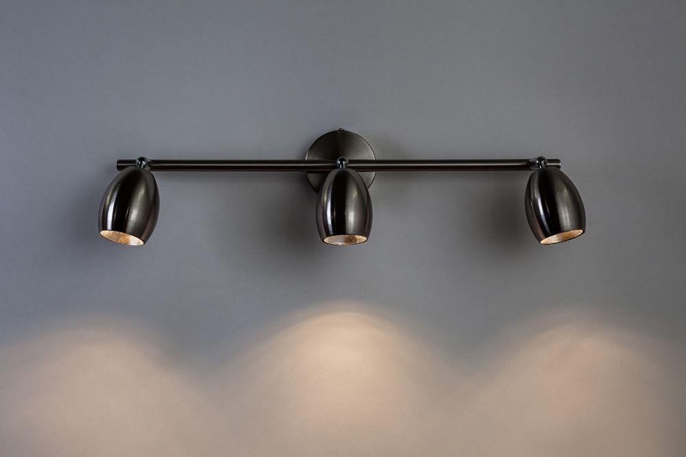 Для спота необходима 3 светодиодные лампы 5 W и цоколем LED. Габариты изделия: высота – 80 мм, диаметр – мм.
