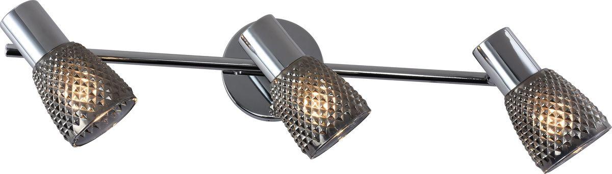 Спот Escada 667/3P от Китайского бренда из коллекции 667 предназначен для установки в кухне на стену в ретро стиле. Спот с металлической арматурой цвет хрома и дымчатого цвета плафонами из стекла, формы предназначен для освещения 9 м2.