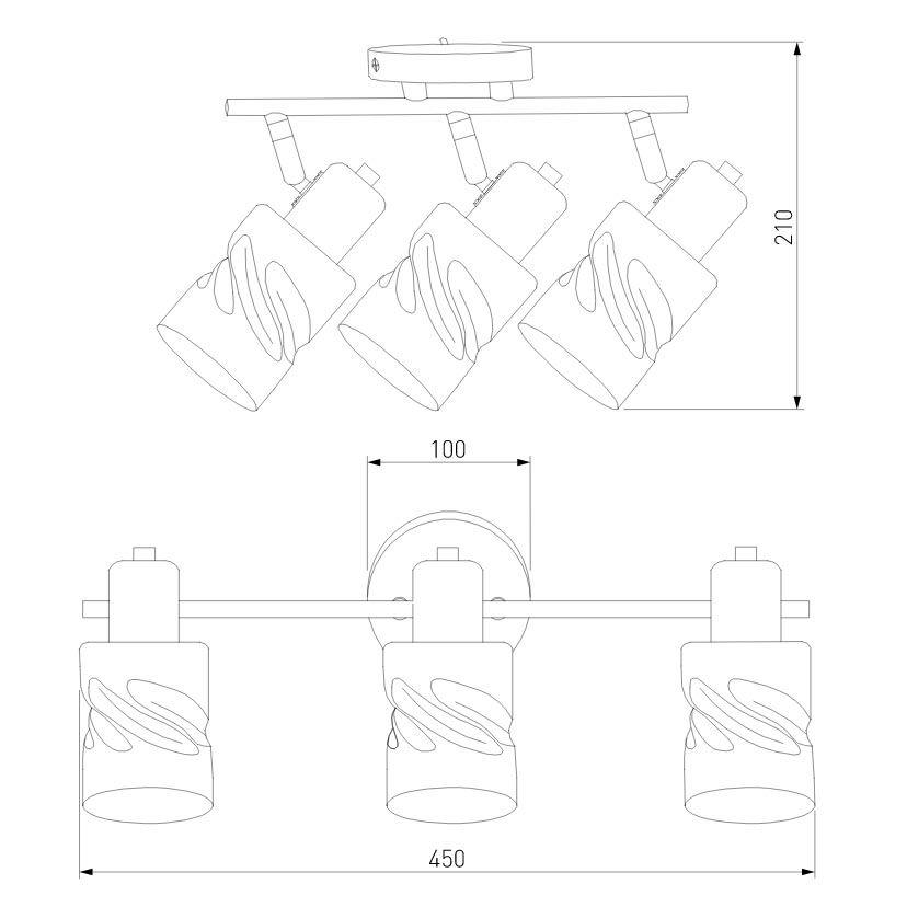 Для спота необходима 3 лампы накаливания 40 W и цоколем E14. Габариты изделия: высота – 150 мм, диаметр – мм.
