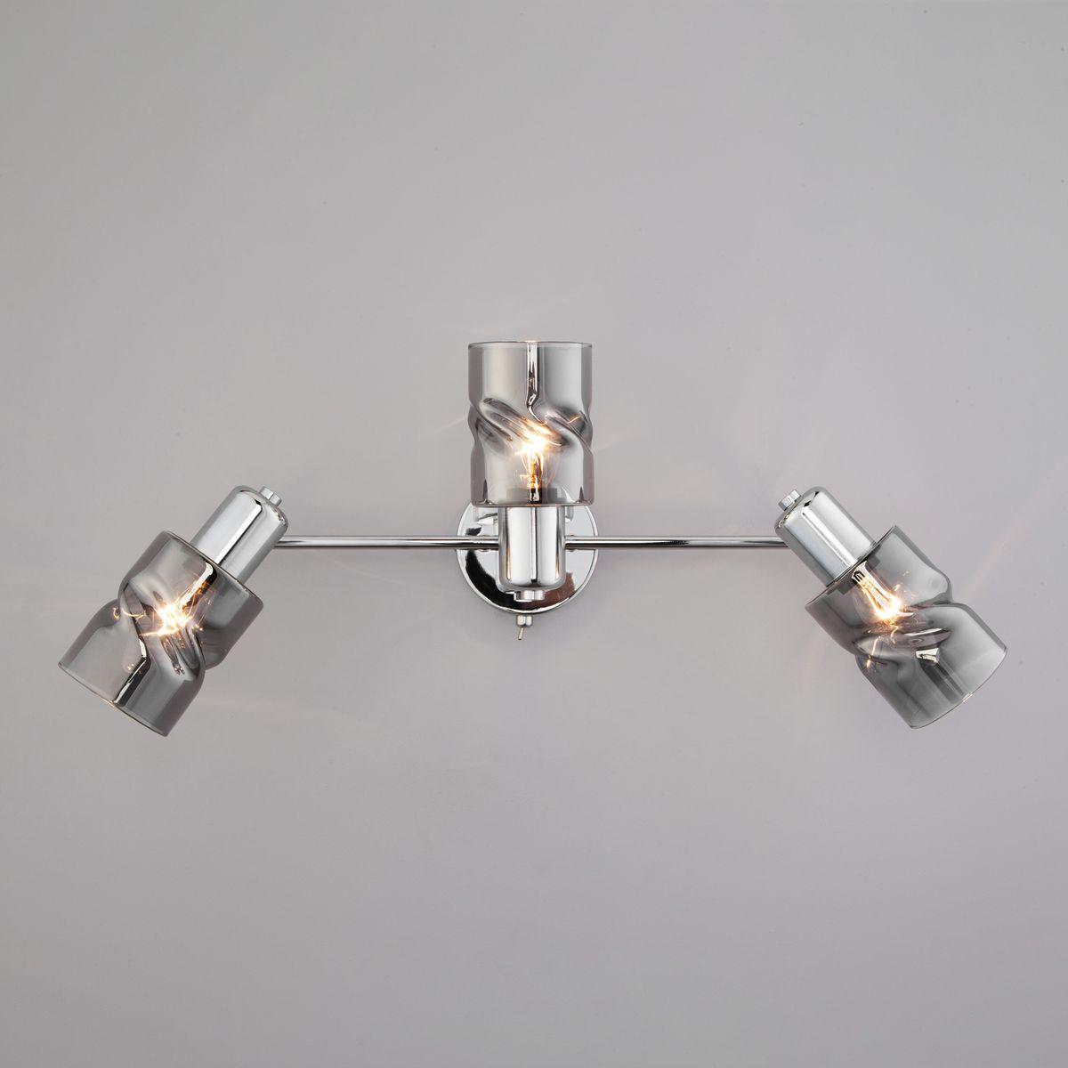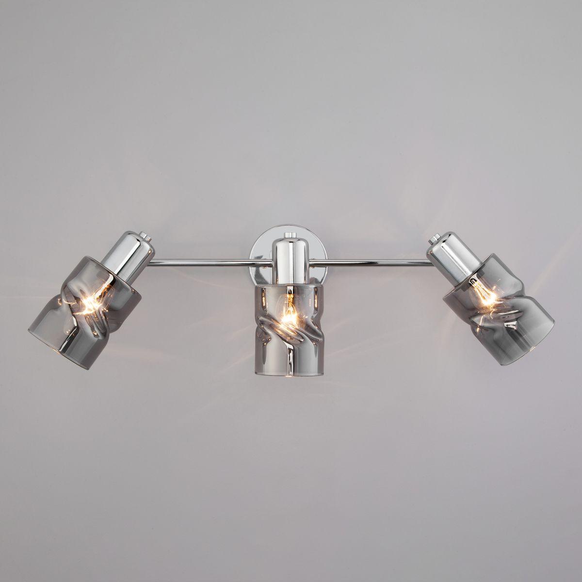 Спот Eurosvet Ansa 20120/3 хром от бренда из коллекции Ansa предназначен для установки в гостиной на стену в стиле модерн. Спот с металлической арматурой цвет хрома и дымчатого цвета плафонами из стекла, формы предназначен для освещения 8 м2.