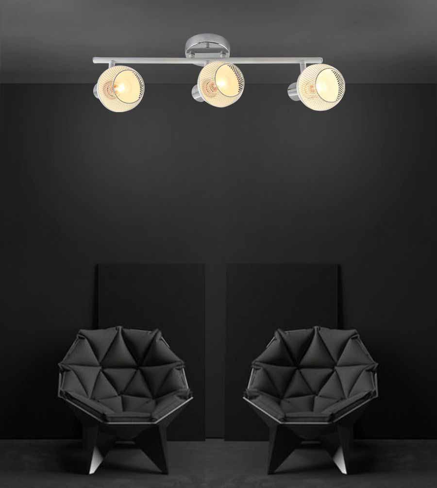 Для спота необходима 3 лампы накаливания 60 W и цоколем E14. Габариты изделия: высота – 185 мм, диаметр – мм.
