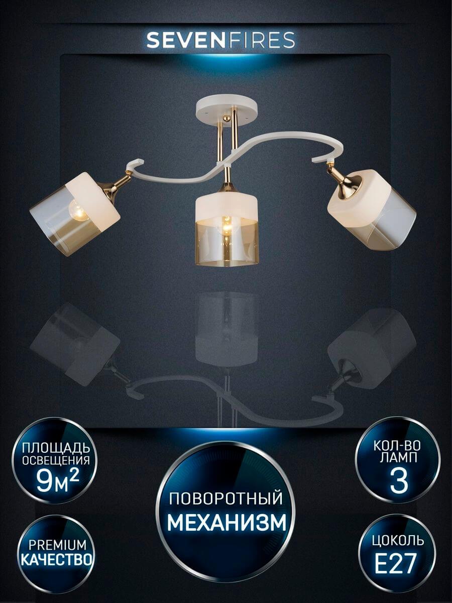 Спот Seven Fires Chirsty WD3526/3C-FGD-WT-AM от Российского бренда из коллекции Chirsty предназначен для установки в гостиной на потолок в стиле модерн. Спот с металлической арматурой белого цвета и цвета шампунт плафонами из стекла, формы предназначен для освещения 9 м2.