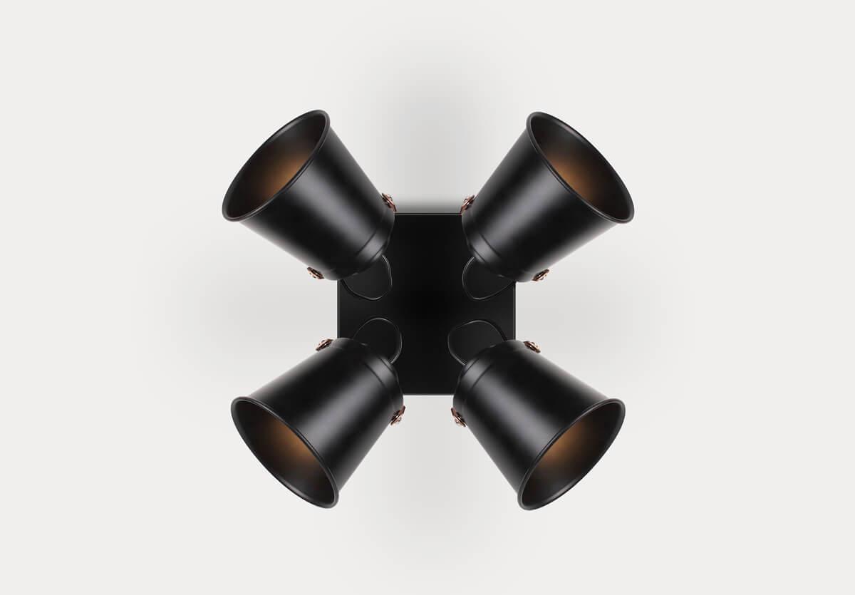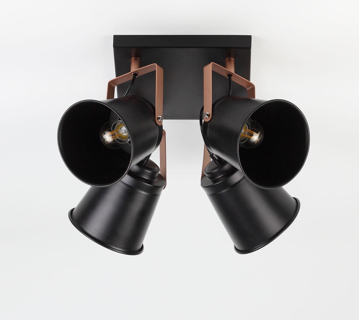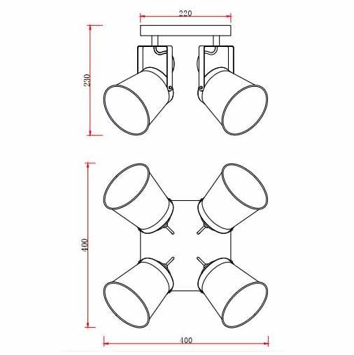 Для спота необходима 4 лампы накаливания 40 W и цоколем E27. Габариты изделия: высота – 230 мм, диаметр – мм.