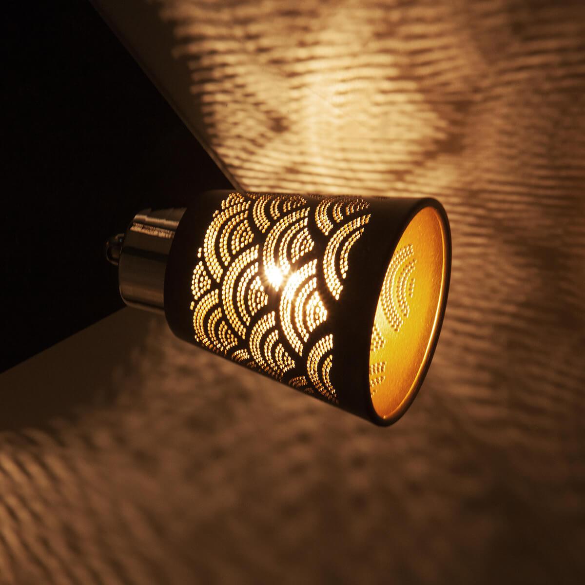 Потолочный светильник Eurosvet 20061/4 черный от Российского бренда Eurosvet из коллекции Monte предназначен для установки в кафе и ресторанах на потолок в восточном стиле. Спот с металлической арматурой черного цвета и черного цвета плафонами из металла, формы конуса предназначен для освещения 11 м2.