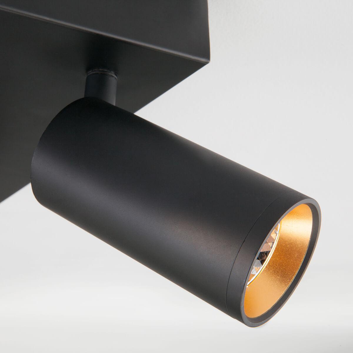 Потолочный светильник Eurosvet 20066/4 черный/золото от Российского бренда Eurosvet из коллекции Fleur предназначен для установки в кухне на потолок в современном стиле. Спот с металлической арматурой черного цвета и черного цвета плафонами из металла, формы цилиндра предназначен для освещения 10 м2.