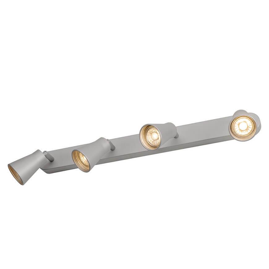 Для спота необходима 4 галогеновые лампы 50 W и цоколем GU10. Габариты изделия: высота – 95 мм, диаметр – мм.